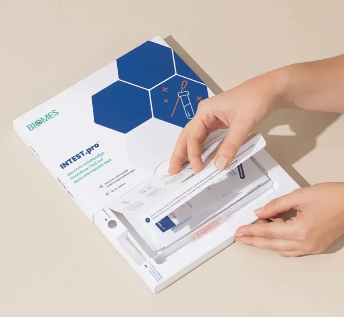 Con INTEST.pro, puedes analizar tu microbioma intestinal desde casa y descubrir cómo mejorar tu salud de forma personalizada. Gracias a la más avanzada biotecnología desarrollada en Alemania, identificamos con precisión todos los microorganismos presentes en tu intestino para ofrecerte una visión completa de su estado actual.