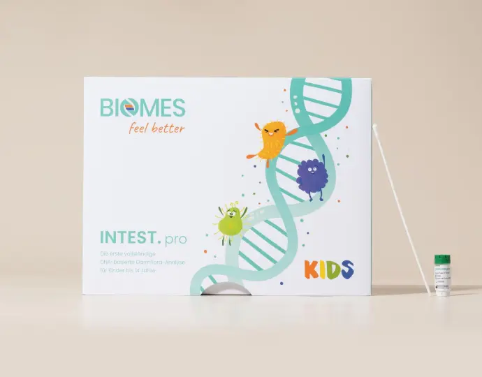 Descubra el estado de la flora intestinal de su hijo con INTEST.pro KIDS de BIOMES, una prueba diseñada específicamente para el bienestar infantil.
