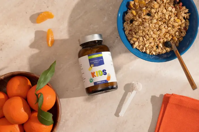 Tratamiento mensual formulado especialmente para el bienestar infantil, con 5 cepas bacterianas clave, vitaminas del grupo B, vitaminas C, D y E, además de calcio, hierro y zinc.
